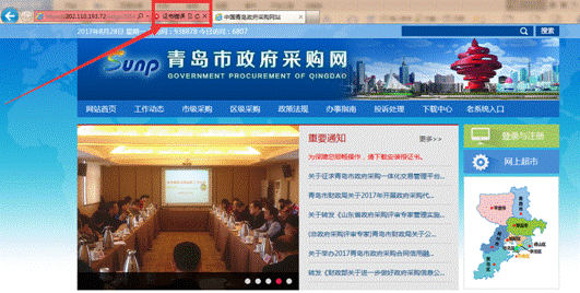 3.地址栏会是红色提醒状态,点击,如下图所示: